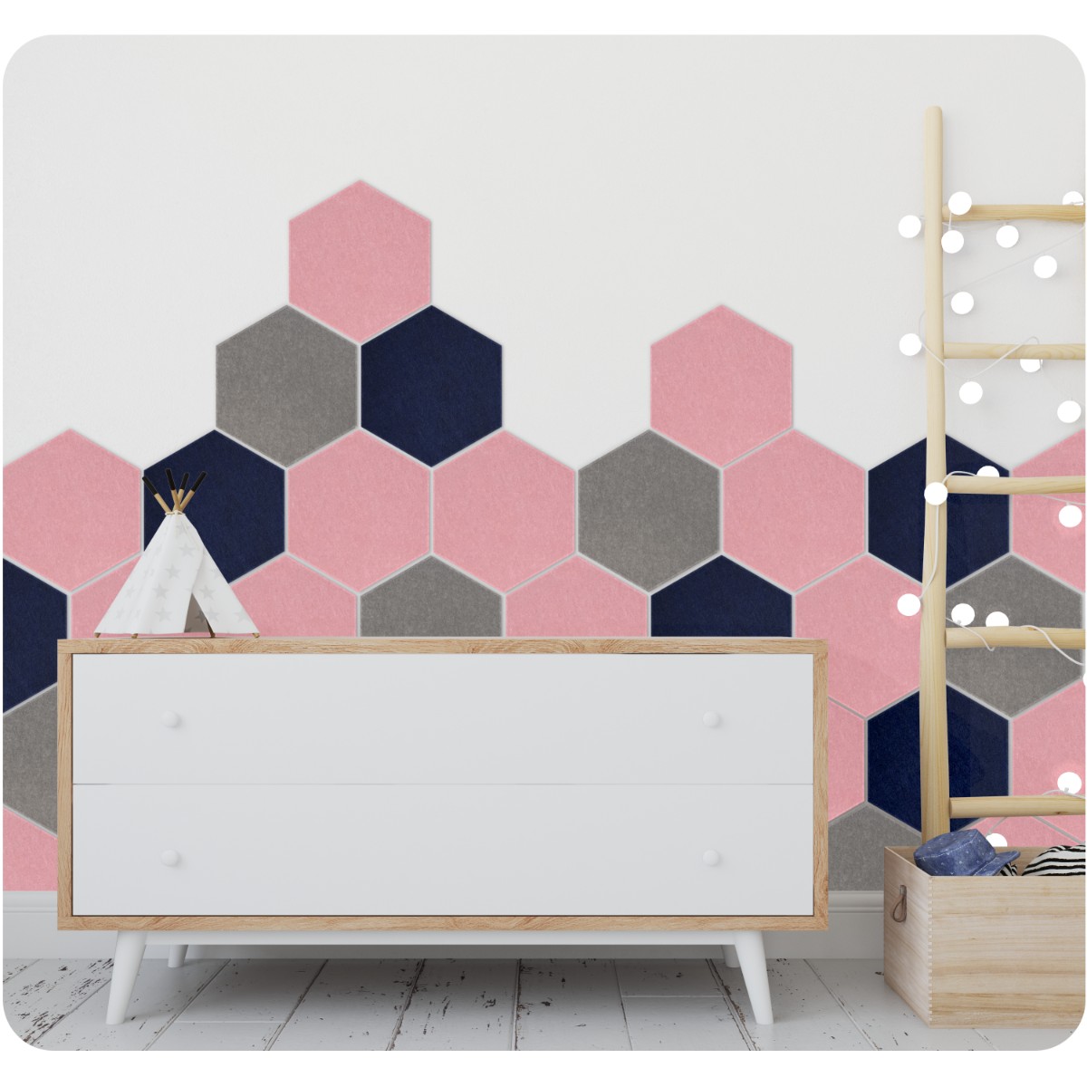 Doskonałe rozwiązanie dla tych, którzy pragną nie tylko funkcjonalności, ale także estetyki w swoim wnętrzu. Nasz panel ścienny jest wykonany z wysokiej jakości filcu PET, zapewniającego trwałość i wytrzymałość na długie lata.